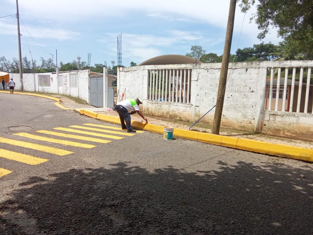 Realiza Tránsito pinta de paso peatonal en telesecundaria de Huapacalito