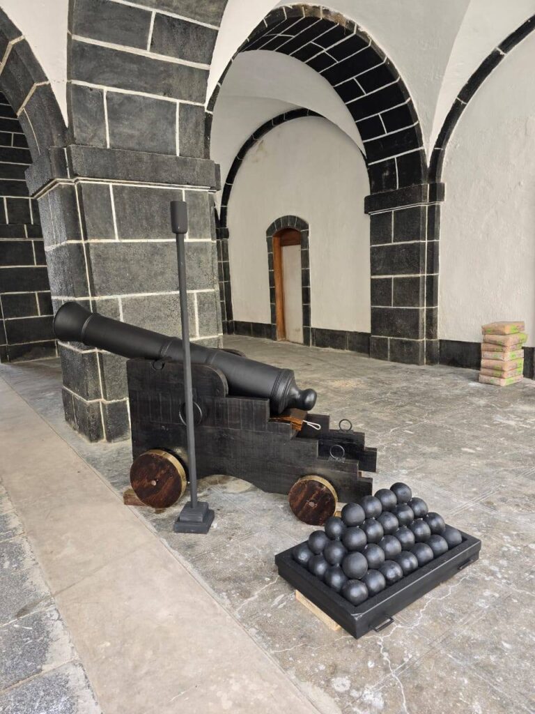 Frente a nosotros, al llegar a la entrada principal, nos dieron la bienvenida dos estatuas de piedra de soldados, de apariencia solemne y aspecto centinela. La leyenda que pesa sobre ellos nos habla de dos amigos que, se cuenta que las estatuas conocidas como “los desterrados de piedra” representan a dos soldados españoles, Francisco Ferrer y Jaime Castels, quienes fueron condenados a ser centinelas eternos como castigo por descuidar su deber. Se dice que pelearon por una mujer y murieron en servicio, lo que llevó a su rey a ordenar su “deserción” perpetua en forma de estatuas, enviadas al Nuevo Mundo.
