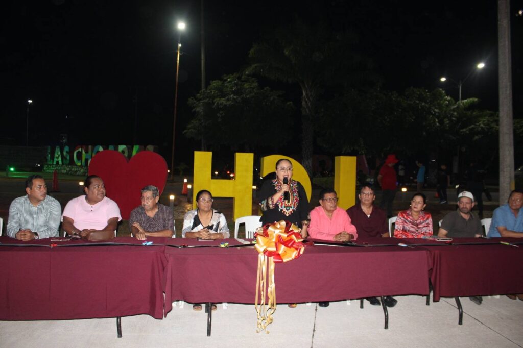 Las Choapas, Ver., a 08 de noviembre de 2025.- Con un ambiente de fiesta es como esta noche de sábado, la Presidenta Municipal Mariela Hernández García, hizo entrega de la obra de pavimentación y alumbrado de la calle Álamo del tramo que abarca del boulevard Antonio M. Quirazco a la calle Robles de la colonia Huapacalito.