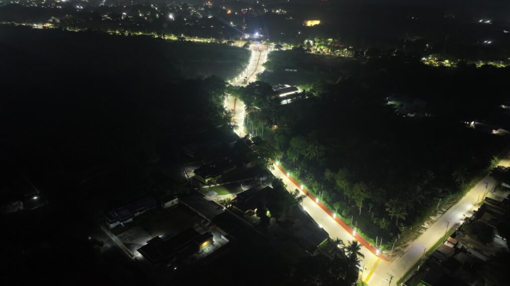 Para dejar completamente iluminada esta obra, fue necesario etiquetar la obra 033, correspondiente al alumbrado público, donde se instalaron en banquetas 77 luminarias tipo bolardo triangular, cada una equipada con 6 tubos led.