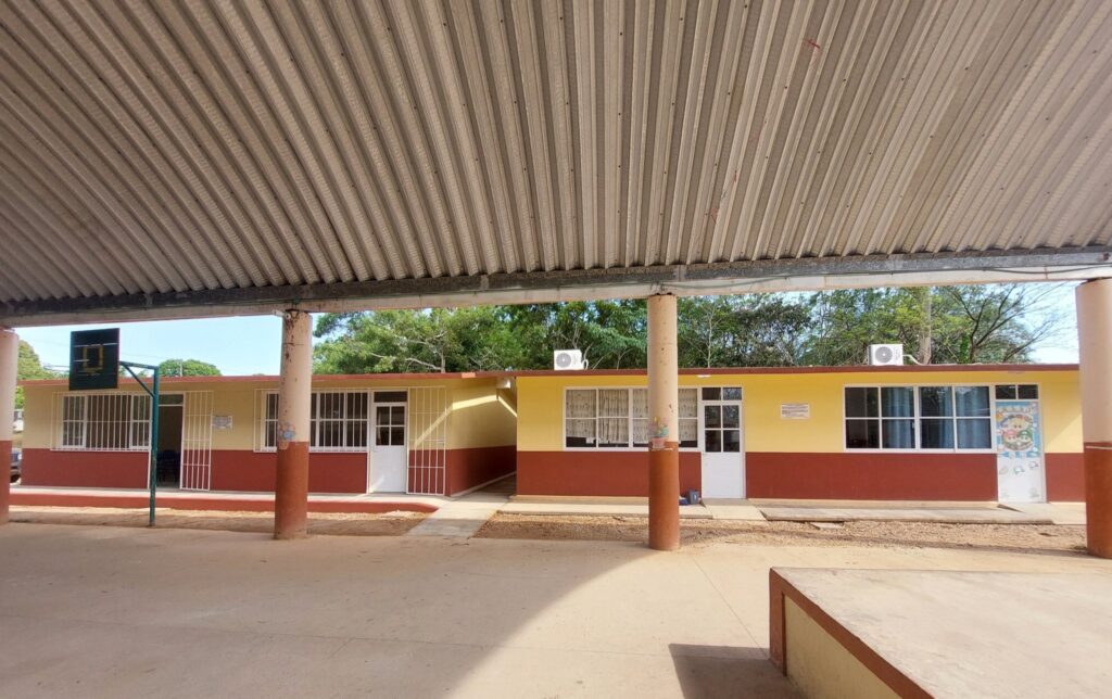 En la escuela primaria Ricardo Flores Magón, ubicada en la calle Mártires de Chicago de la colonia J. Mario Rosado, a petición de los padres de familia y el respaldo de los profesores, con recursos de 2023 se construyeron 2 aulas y con recursos de 2024, se construyeron 2 aulas más, beneficiando a los niños y niñas de esta institución educativa.