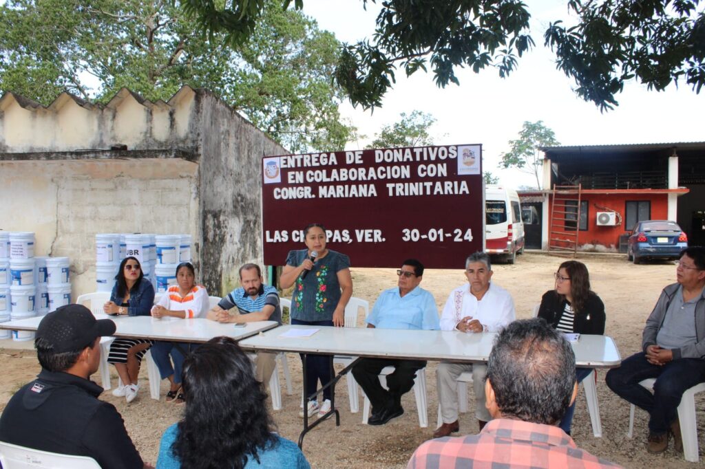La entrega de este material se debió a la adquisición de cemento a la Congregación Mariana Trinitaria para las obras de la calle Belisario Domínguez, en pavimentación de un tramo del camino de Remolino y Adalberto Tejeda, por lo que en reciprocidad la Congregación realizó la donación de pintura, sellador e impermeabilizante.