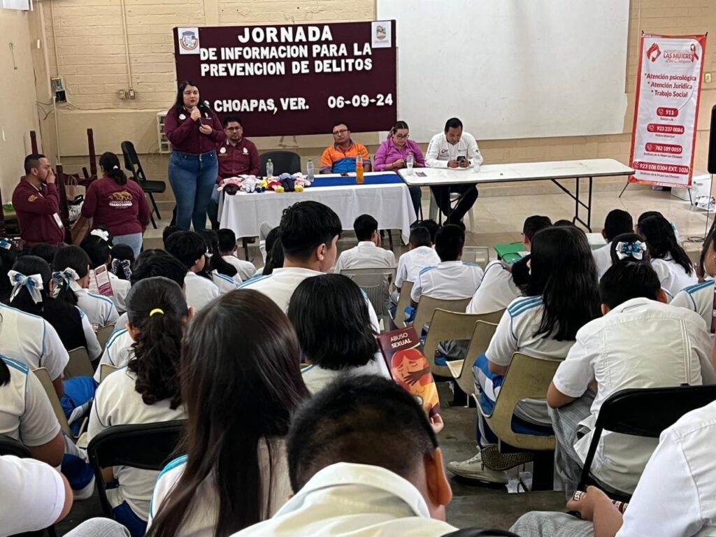 Las Choapas, Ver., a 07 de septiembre de 2024.- El Gobierno Municipal, implementó la Jornada de Información para la Prevención de Delitos, por lo que acudió a la escuela secundaria General Lázaro Cárdenas del Río, para impartir diferentes temas a los estudiantes.