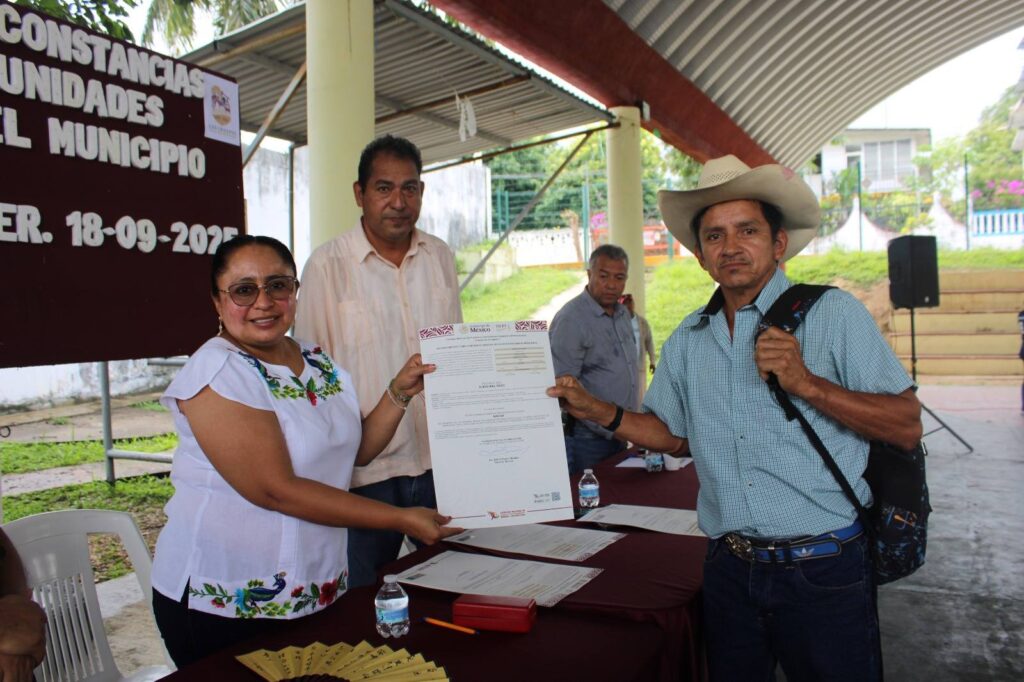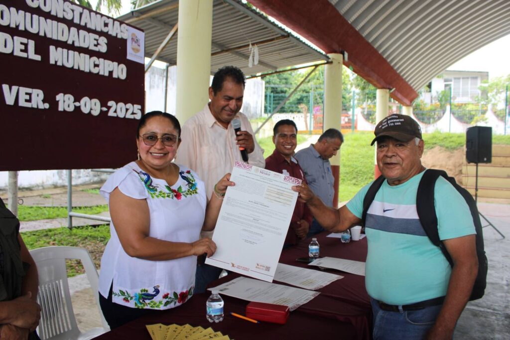 Las Choapas, Ver., a 18 de septiembre de 2025.- Durante la entrega de 46 reconocimientos a igual número de comunidades inscritas dentro del catálogo Nacional de Pueblos y Comunidades Indígenas y Afromexicanas, la Presidenta Municipal Mariela Hernández García, pidió a las comunidades respaldar a sus autoridades municipales, para así trabajar en equipo y darle solución a las diferentes necesidades que presenten.