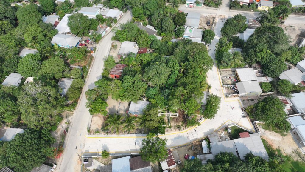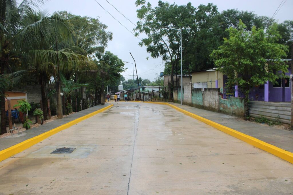 Esta obra forma parte del Programa de Pavimentación 2025, la cual consistió en la pavimentación con concreto hidráulico de la calle Cacao, que tiene una longitud de 143 metros y un ancho de 6 metros, se construyeron 309 metros cuadrados de banquetas y 309 metros lineales de guarnición, así como colocación de 8 luminarias solares con postes metálicos galvanizados.