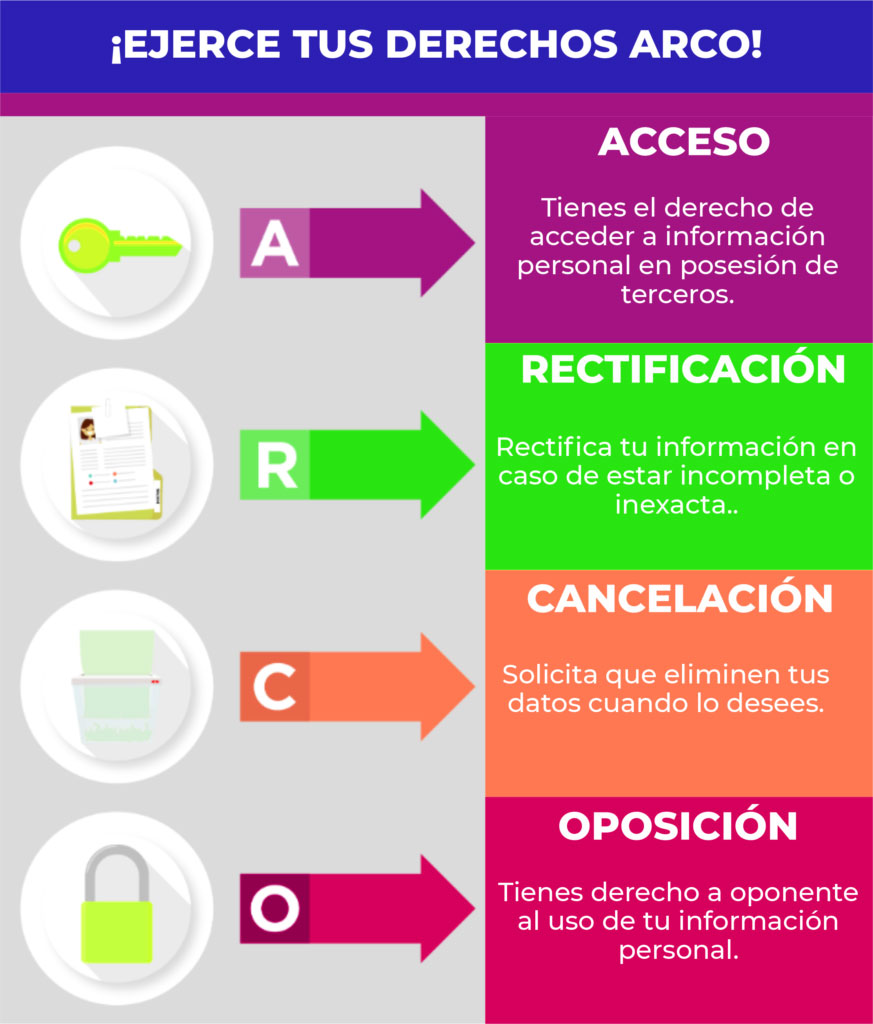 controlar sus datos personales. Significa Acceso, Rectificación, Cancelación y Oposición,